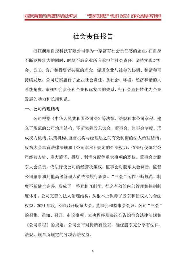 新聞中心 當前位置: 電動閥門廠家> 新聞資訊> 新聞中心> 澳翔-2021年社會責任報告